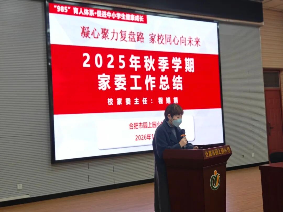 为推动“985”育人体系落地扎根,凝聚家校协同育人合力,1月 12日下午,合肥市园上园小学召开2025-2026学年第一学期家委会工作总结会。合肥市园上园小学党支部书记、校长张厚贵,德育...