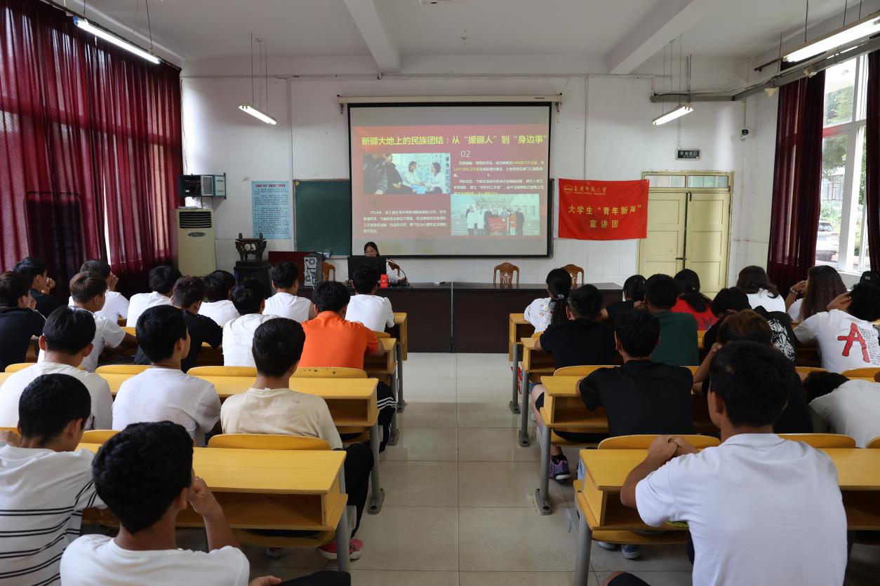 10月3日,安庆师范大学大学生“青年新声”宣讲团赴安徽理工学校开展宣讲活动。安徽理工学校相关负责人、马克思主义学院2024级本科生辅导员及170余名新疆学子参加宣讲。