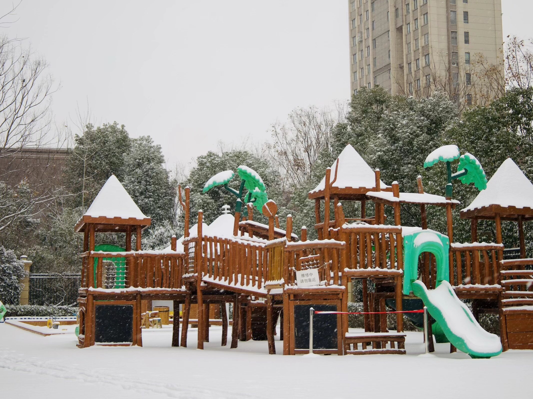 一夜寒风起,万树梨花开。一场酣畅淋漓的大雪为合肥市宿州路幼儿园教育集团湖畔分园披上了银白盛装,雪虽已停歇,但园内的草坪、滑梯、操场仍被厚厚的积雪覆盖,宛如童话般的冰雪世界。