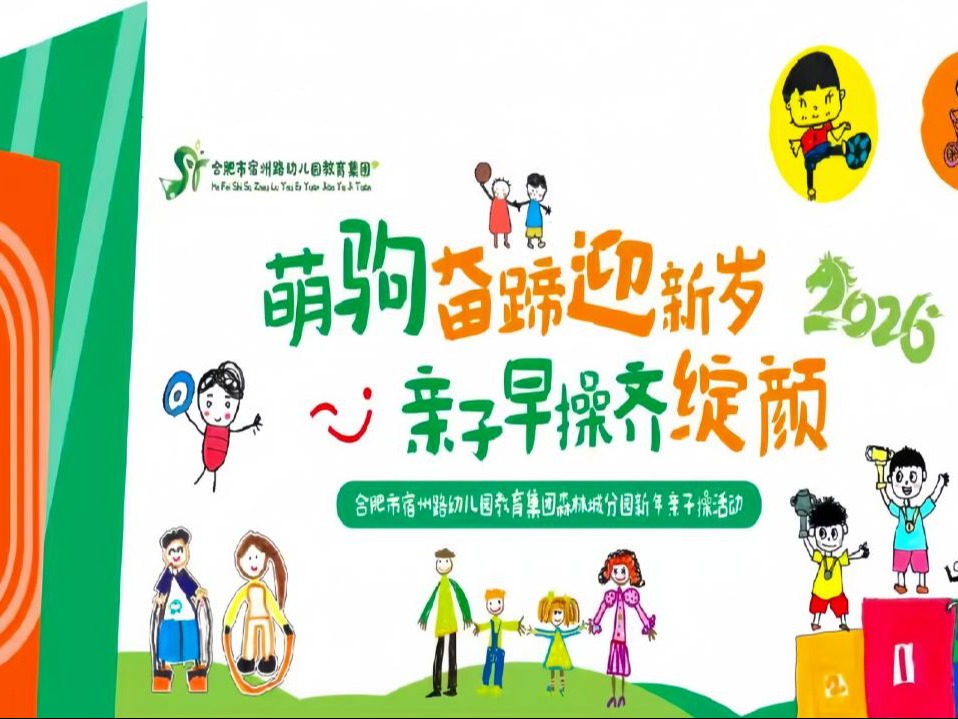 为积极响应庐阳区“YUE动庐阳·欢乐校园”行动号召,践行体教融合与美育浸润的育幼理念,合肥市宿州路幼儿园教育集团森林城分园于12月30日,举办“萌驹奋蹄迎新岁 亲子早操齐绽颜”新...