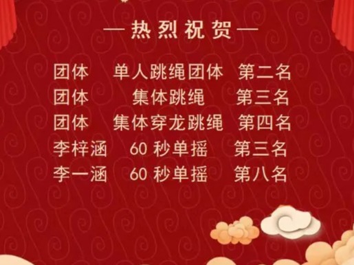 近日,合肥市行知实验中学传出喜讯:学校于瑶海区第十九届中小学生暨教职工跳绳比赛中再创佳绩!
