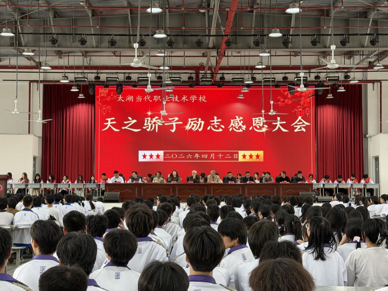 喜报传佳音,奋进正当时!在太湖当代职业技术学校84位学子成功考取本科院校的喜庆氛围中,4月12日,“天之骄子”励志感恩报告会在校多功能厅隆重举行。学校领导、教师代表、84位本科录取学...