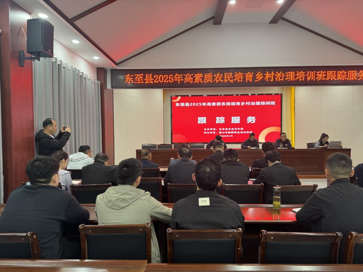 近日,由东至县农业农村局主办、潜山市新新职业培训学校承办的东至县2025年高素质农民培育乡村治理培训2班跟踪服务活动圆满举行。此次活动旨在进一步巩固高素质农民培育成果,持续提升乡村...