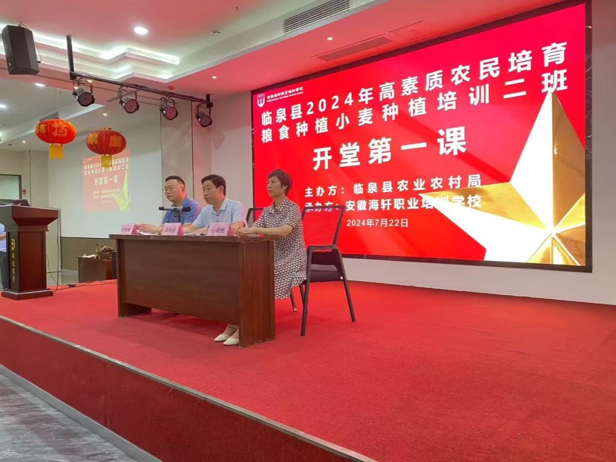 2024年,农业大县临泉县迎来了又一年高素质农民培育。7月22日,由临泉县农业农村局主办,安徽海轩职业培训学校承办的2024年高素质农民培育粮食种植小麦种植培训一班在临泉县开班。此次培训...