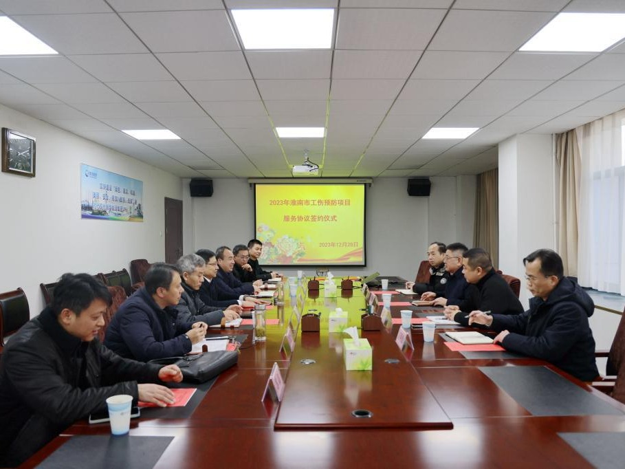 12月28日下午,淮南市工伤预防项目服务协议签字仪式在淮南职业技术学院举行。淮南市人力资源和社会保障局工伤保险管理中心主任李坤国,淮南职业技术学院党委副书记、纪委书记、工会主席童 ...