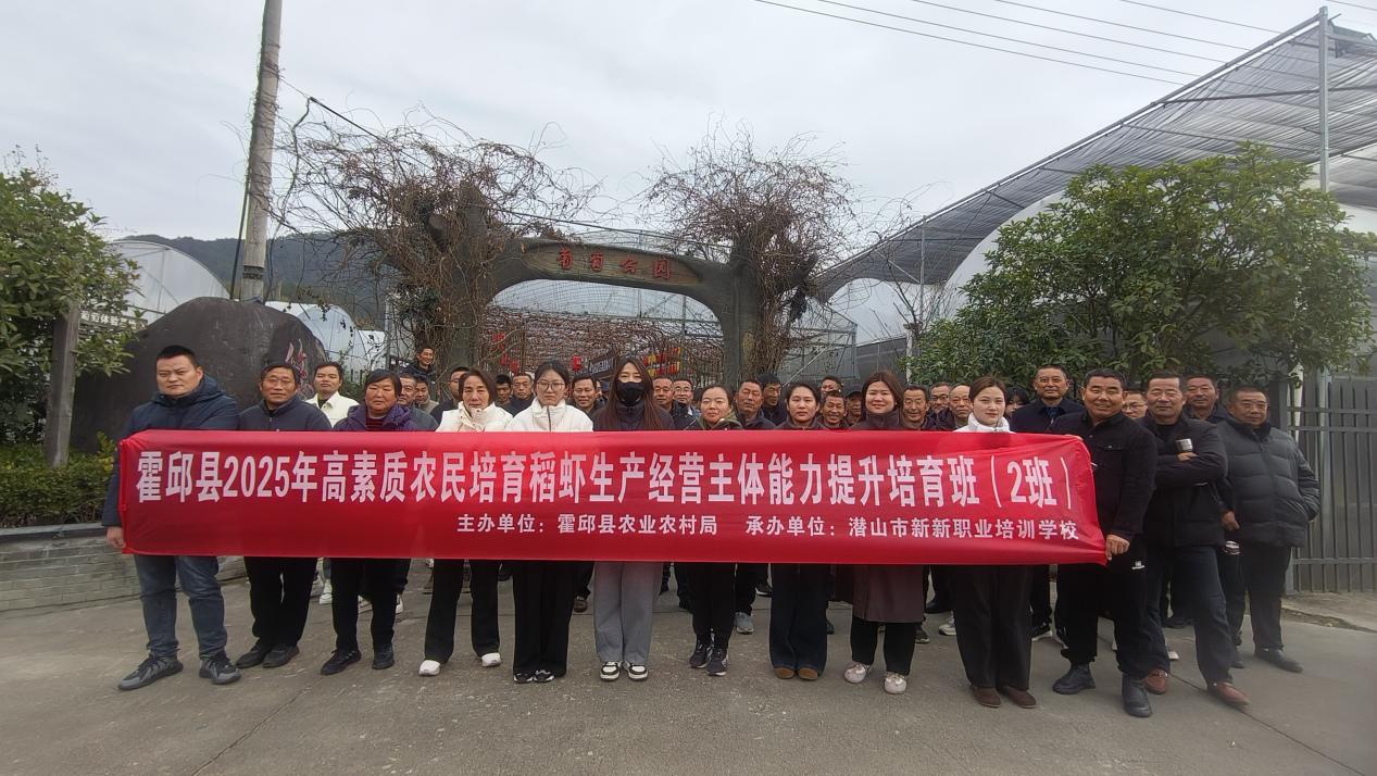 近日,由霍邱县农业农村局主办、潜山市新新职业培训学校承办的2025年高素质农民培育稻虾生产经营主体能力提升培育班(2班)组织50余名稻虾养殖大户、合作社带头人奔赴湖北开展实地考察培训...