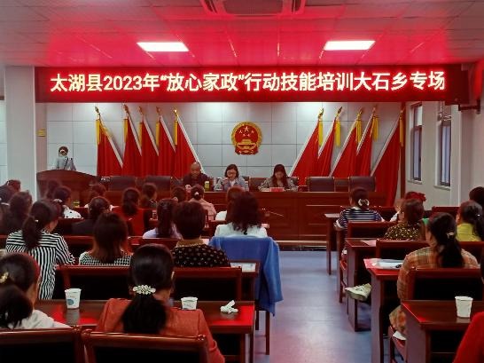 5月17日,由太湖县商务局、县妇联联合主办的大石乡“放心家政”行动技能培训班举行开班仪式。仪式由大石乡妇联主任汪雯主持。