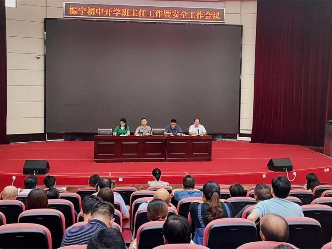 为提高班级管理水平,构建平安校园,9月5号下午,怀宁县振宁初中在校会议室召开新学期班主任工作暨安全工作会议。行政人员和八九年级班主任参加会议。副校长何庆华主持会议。