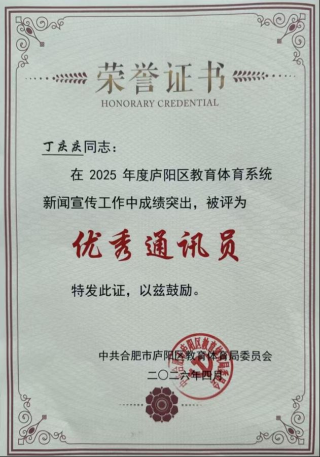 2026年4月16日,合肥市庐阳区教育系统宣传工作表彰大会传来捷报!合肥市长江路幼儿园京福分园丁庆庆老师,凭借出色的政治素养、扎实的业务能力与突出的宣传实绩,荣获 “2025-2026年 ...