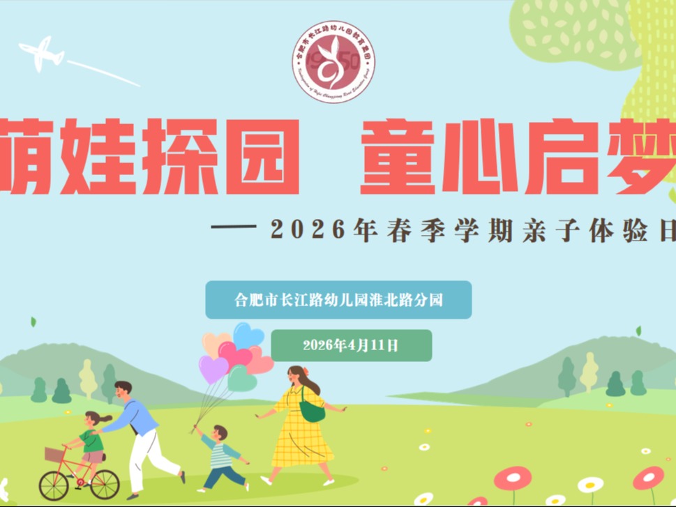 为进一步拉近家园距离,帮助幼儿熟悉园所环境,2026年4月11日,合肥市长江路幼儿园淮北路分园开启“萌娃探园童心启梦”2026年春季学期亲子体验日活动,萌娃们在家长陪伴下,沉浸式感受幼儿...