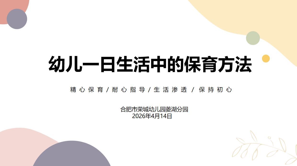 为进一步规范保育工作流程,提升保育老师专业素养与实操能力,筑牢幼儿在园健康安全防线,合肥市荣城幼儿园菱湖分园于2026年4月14日开展了幼儿一日生活的保育方法专题培训。