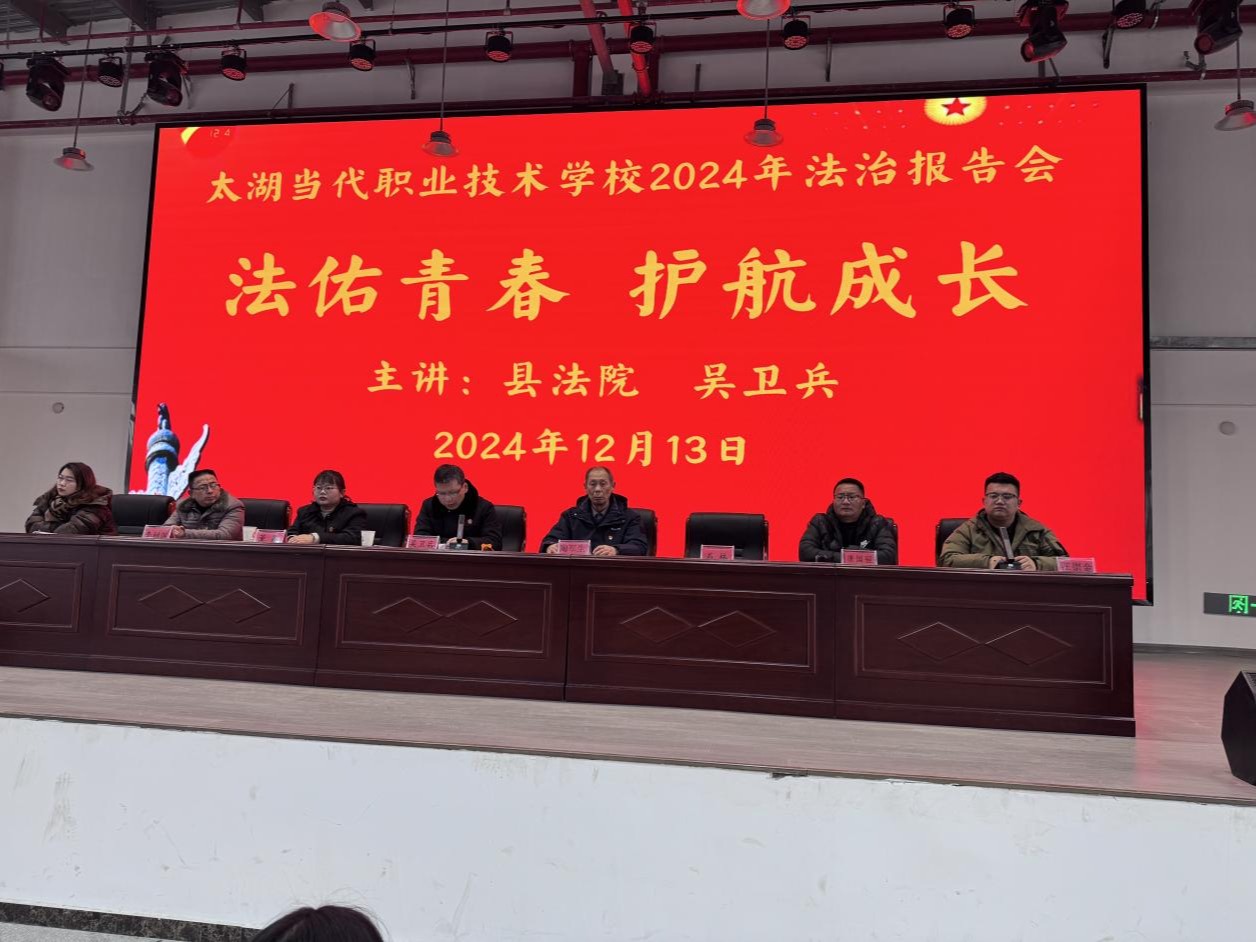 为了进一步加强青少年普法学法守法用法意识,努力营造平安、和谐、文明的校园环境,12月13日,太湖当代职业技术学校2024年法治报告会在学校多功能厅举行, 太湖县人民法院副院长、法治...