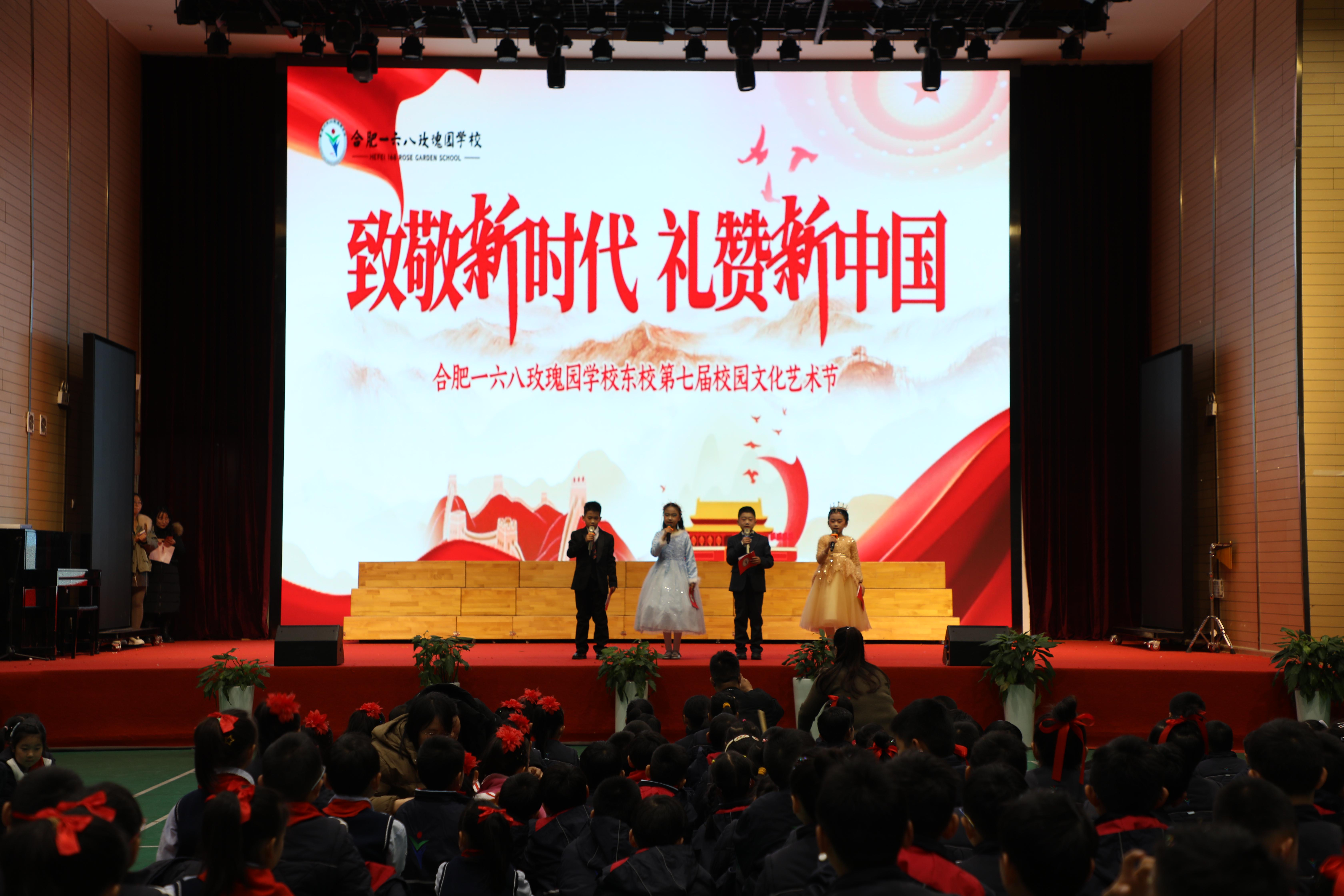 在冬日的暖阳下,合肥一六八玫瑰园学校东校“致敬新时代礼赞新中国”第七届校园文化艺术节汇演拉开了帷幕。12月11日上午,三年级组艺术节专场演出在风雨操场举行。