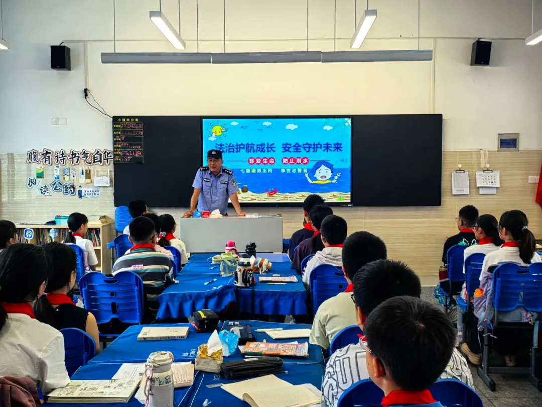 为进一步深化平安校园建设,加强中小学生法治教育,6月24日,合肥市淮合花园小学法治副校长、七里塘派出所李警官面向学生开展安全专题教育活动。