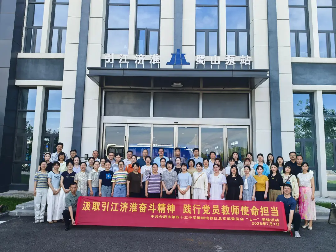 为庆祝中国共产党成立104周年,激励全体党员教师弘扬新时代奋斗精神,强化立德树人使命担当,2025年7月1日,中共合肥市第四十五中学橡树湾校区总支组织全体党员赴引江济淮工程蜀山泵站开展...