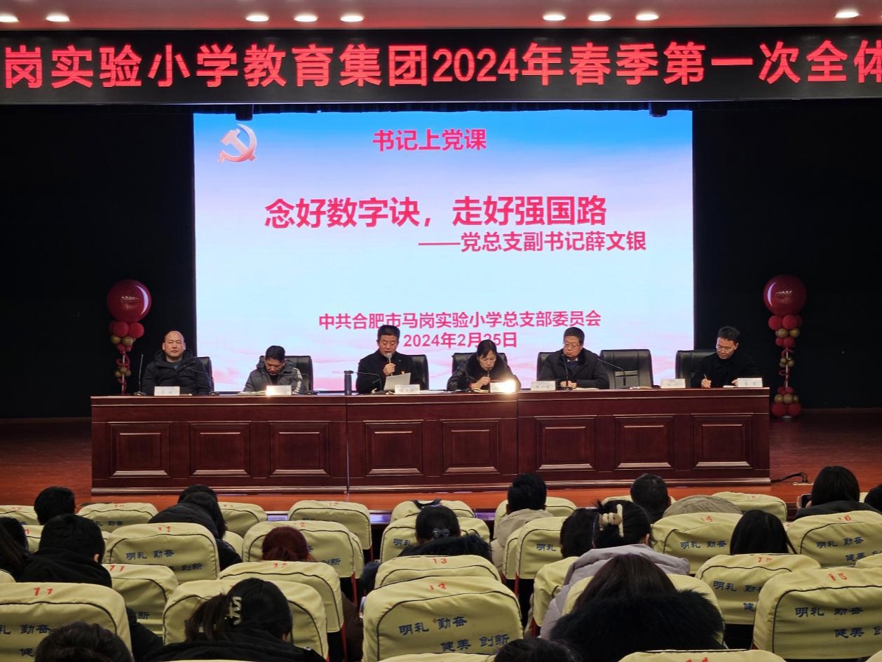 2024年2月25日下午,合肥市马岗实验小学教育集团书记上党课活动在马岗实验小学(南区)报告厅举行,党总支副书记、校长薛文银上党课,领导班子成员及全体教师参加学习。