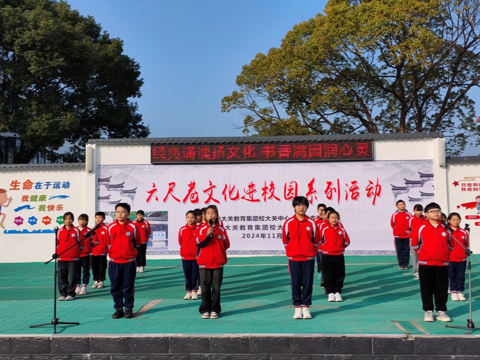 为了更好地落实“双减”政策,传承和弘扬中华民族优秀传统文化,增强师生的文化自信,促进书香校园建设,11月22日上午,桐城市大关中心小学开展了经典诵读展示活动。