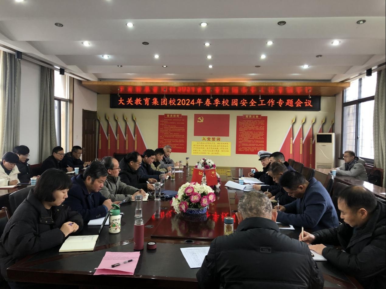 3月6日上午,桐城市大关教育集团校在二楼会议厅召开春季校园安全工作专题会议。桐城市交警三中队、大关镇安监办、镇派出所、镇市场所主要负责人,辖区各校(园)长及民办幼儿园负责人共30 ...