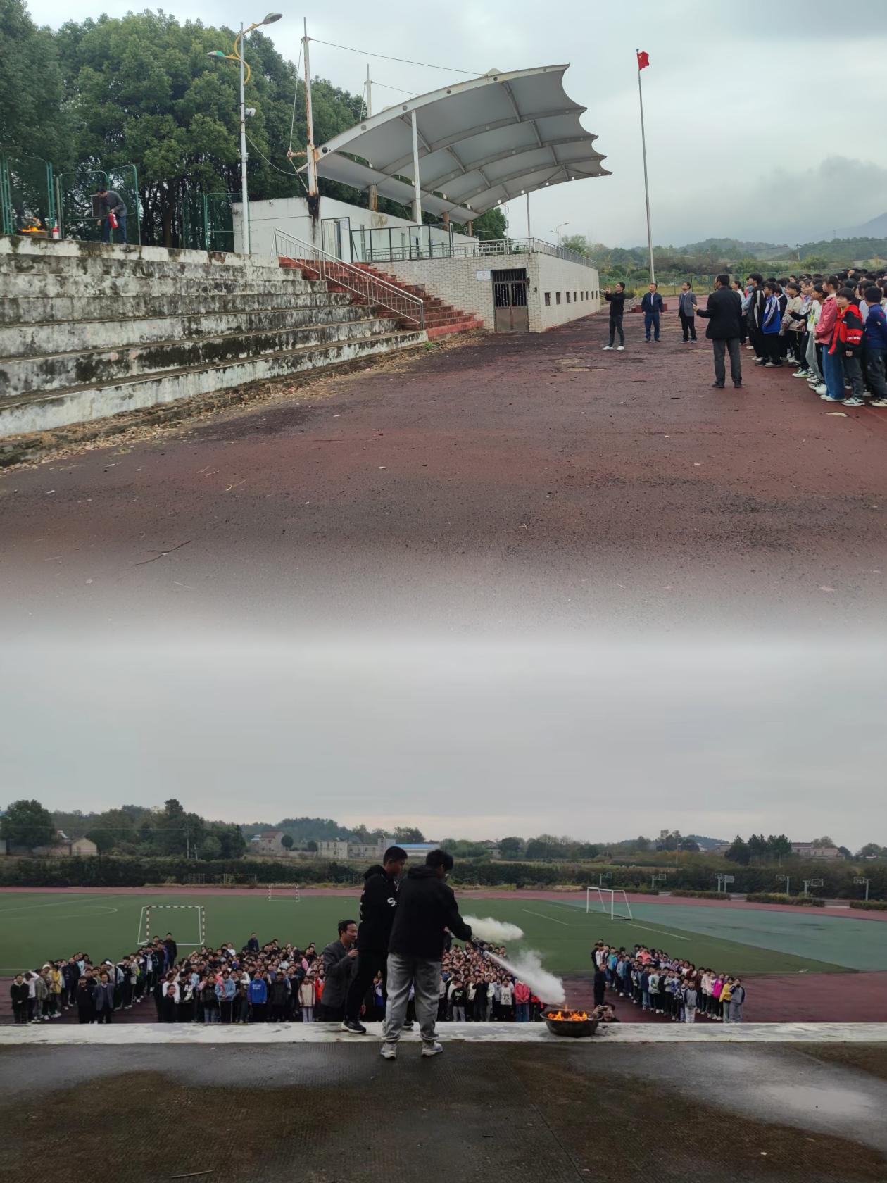 为了提高全体师生在密集场所的应急能力,11月9日,桐城市大关教育集团校卅铺初中利用大课间时间,举行全校师生火灾应急消防安全自救基本技能演练活动。