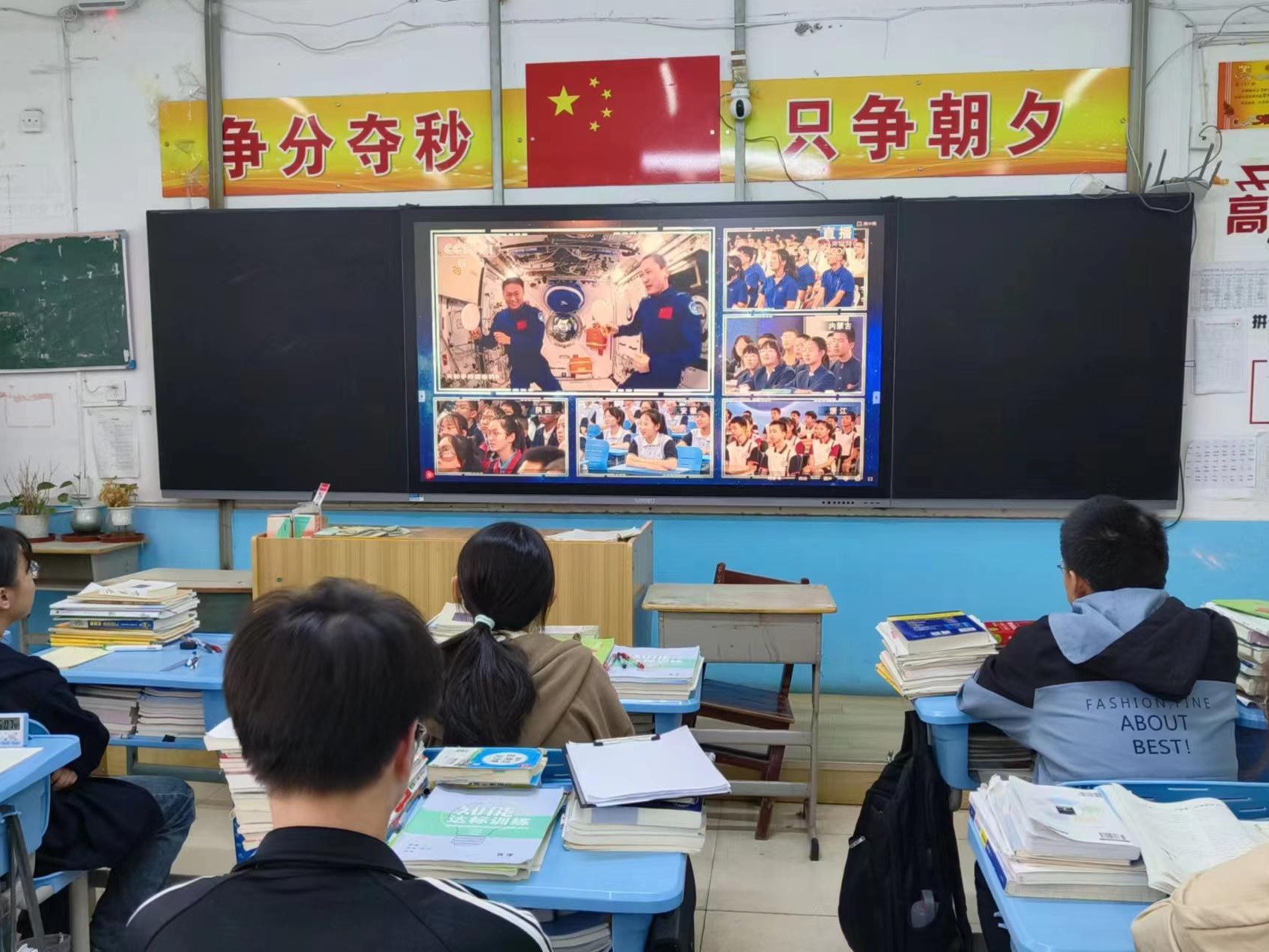 9月21日下午15时45分,神舟十六号航天员景海鹏、朱杨柱、桂海潮在中国空间站进行太空授课。桐城市高考辅导学校及时调整课程安排,组织全校学生在线观看“天宫授课”。