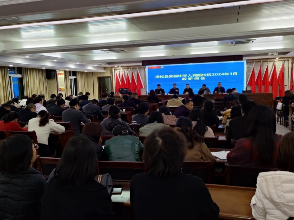 3月27日晚上,宿松县实验中学人民路校区召开3月份教研工作例会。实验中学党总支副书记、副校长胡刚,党总支委员、副校长、人民路校区党支部书记陶钧,人民路校区副书记吴向军和副校长方辉 ...