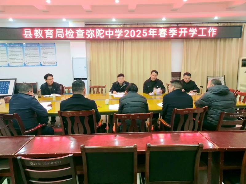 为进一步规范办学行为,保障学校工作安全有序,3月5日,太湖县教育局党委委员曹金中带领开学工作第三检查组到太湖县弥陀中学检查2025年春季开学工作。