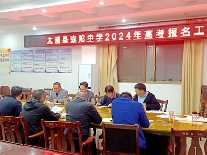 为确保2024年高考报名工作顺利推进,2023年10月21日晚太湖县弥陀中学高考报名工作专题会议在学校知新楼会议室召开,学校领导班子、教务处、高三年级部及全体高三班主任 ...