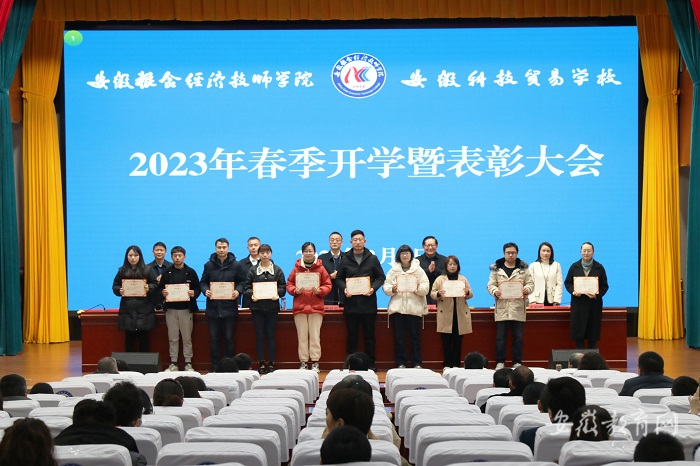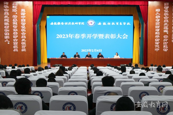 律回春晖渐,万象始更新。2月6日,安徽科技贸易学校在第一报告厅召开2023年春季开学暨表彰大会。党委书记、校长窦祥国出席并讲话。党政班子成员和全体教职工参加。大会由党委委员、副校长王支宝主持。
