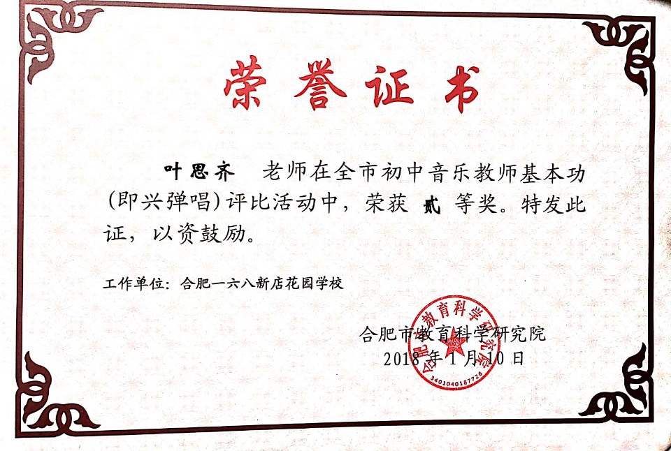 叶思齐,一级教师,合肥市骨干教师。合肥王利红名师工作室成员,毕业以来一直任教音乐学科,基本功扎实,注重实效,善于反思。