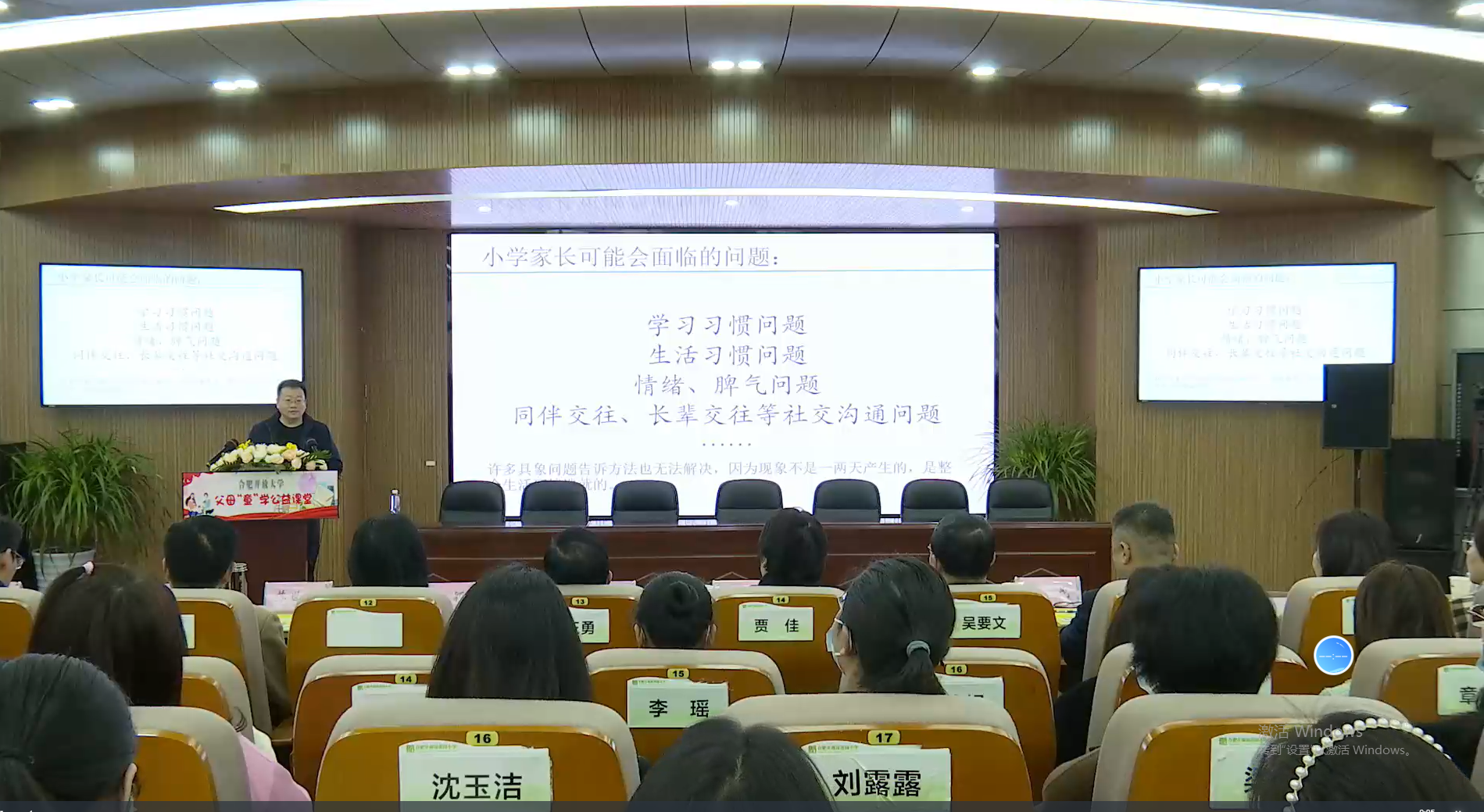 本次活动是合肥开放大学丁昊教授主讲,丁教授从学习习惯问题、生活习惯问题、情绪脾气问题以及社会交往沟通问题等维度给大家解疑答惑。他提出帮助孩子找到兴趣最重要,一定要正向鼓励,要让孩子喜欢上老师,不要在孩子面前说任何负面评价老师的话。丁教授还建议家长陪读要有方法,鼓励要有技巧。在陪读过程中不能玩手机,用鼓励的方式及时强调完成后的成就感。现场,丁教授针对家长们在育儿过程中遇到的困惑耐心作出指导。线上,家长们认真观看直播,记录育儿方法。