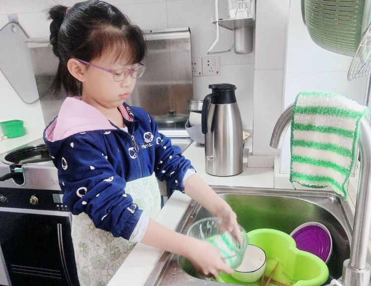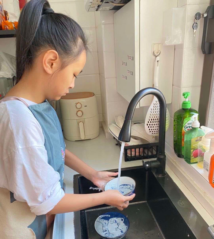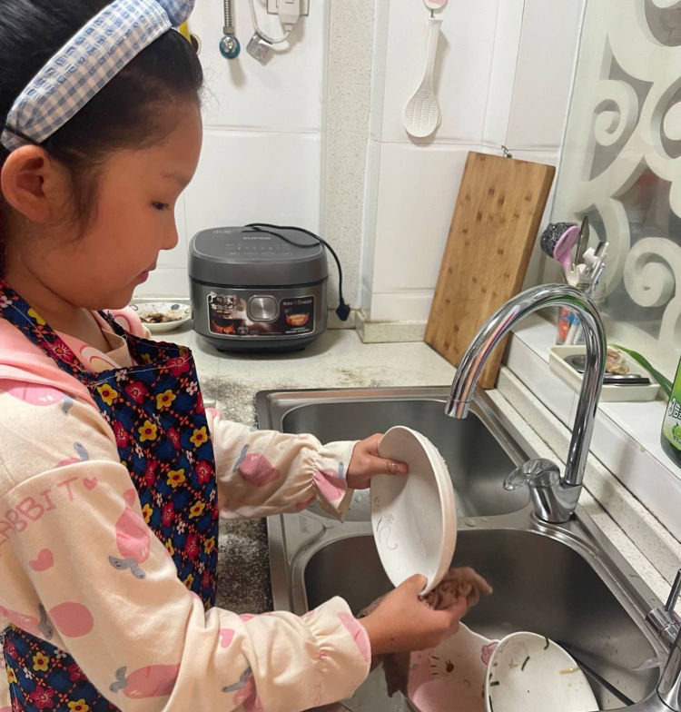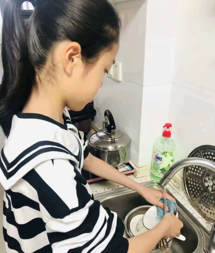 洗碗虽然看似简单,却也有不少需要注意的细节,队员们经过真正实践后发现,原来洗碗的顺序,擦洗的角度,碗筷的分类摆放,都是不可忽略的地方。队员们细心地把洗洁精滴在油渍碗上,用洗碗布轻轻擦拭,有污渍的地方重点清洗,在劳动中我们要找对方法,巧干事情。