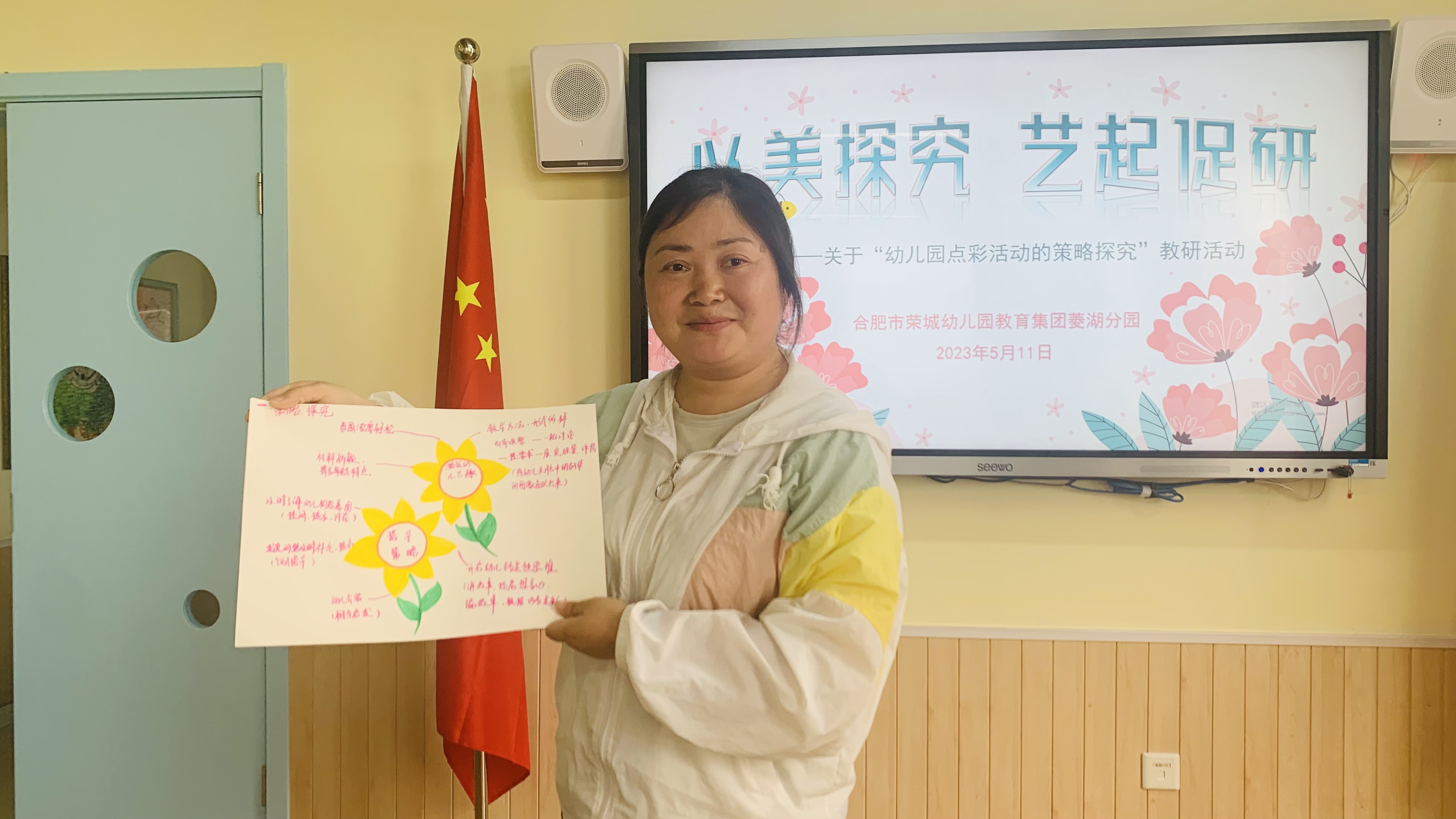 为进一步优化幼儿园点彩活动评价的策略探究,提高教师点彩活动的指导策略。5月11日,合肥市荣幼教育集团菱湖分园全体教师在保教负责张艳带领下,开展了“以美探究 艺起促研”的专题教研活动。