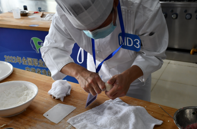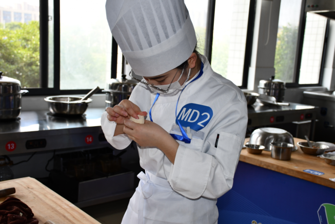 中式面点制作,面粉在选手们巧手的一番“揉搓”后,手中食材就变换出各种造型,经过蒸笼高温加热,香气四溢、外形可人的精致面点呈现眼前。