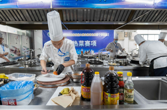 中餐热菜制作,选手们运刀、火候、调味基本功扎实,煎炸蒸炒,巧花心思,各显神通。