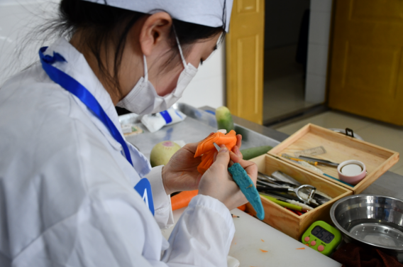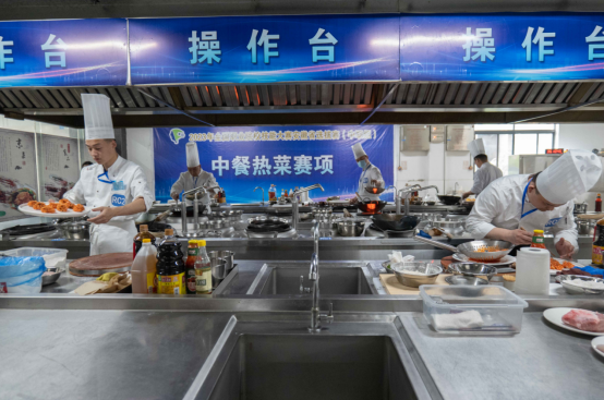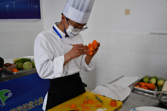 中式烹饪赛项采取师生同赛的方式,竞赛内容由理论知识、中餐热菜制作、中式面点制作、冷拼与雕刻制作四个模块组成。比赛期间,各支参赛队伍精神饱满、奋力拼搏,表现出扎实的理论功底和高超的技艺水平。
