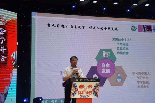 每一个实例背后都是费广海“以生为本”的教育思想的体现,都是“儿童视角”的真实体现。他指出,南小的任何管理决策都要评估:“对学生有益吗?”“学生愿意接受吗?”“为学生的终身发展起到多大作用?”这才是校园文化建设的核心意义,这才能使校园文化成为一种根植于教师、学生内心的力量。最后,费广海提出要把握文化建设的“关键词”:理解、自由、责任、信赖、尊重、智慧、书香、微笑、掌声、尊重、智慧……一切以学生为本,才是学校文化的核心价值追求。