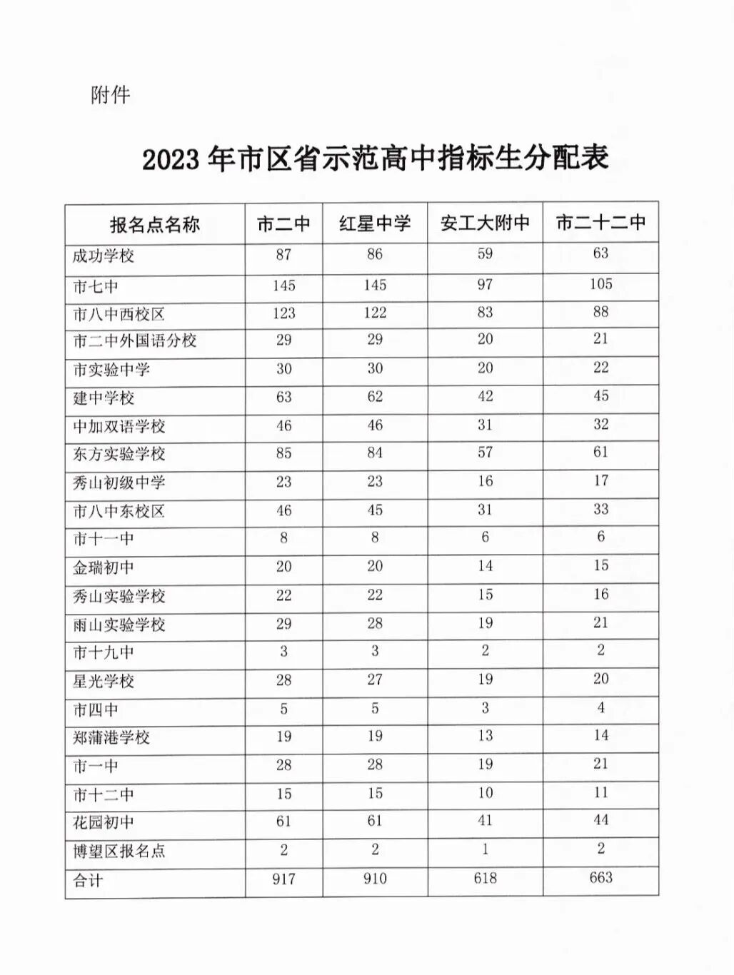 讯 据马鞍山市教育局消息,7月3日,马鞍山教育招生考试院发布关于2023年市区省示范高中指标生分配情况的公告。