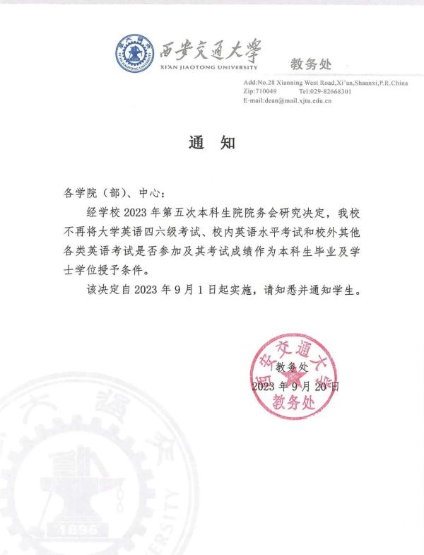 (原标题为《【西安交大回应取消四六级学位证挂钩:消息属实,通过商议决定》