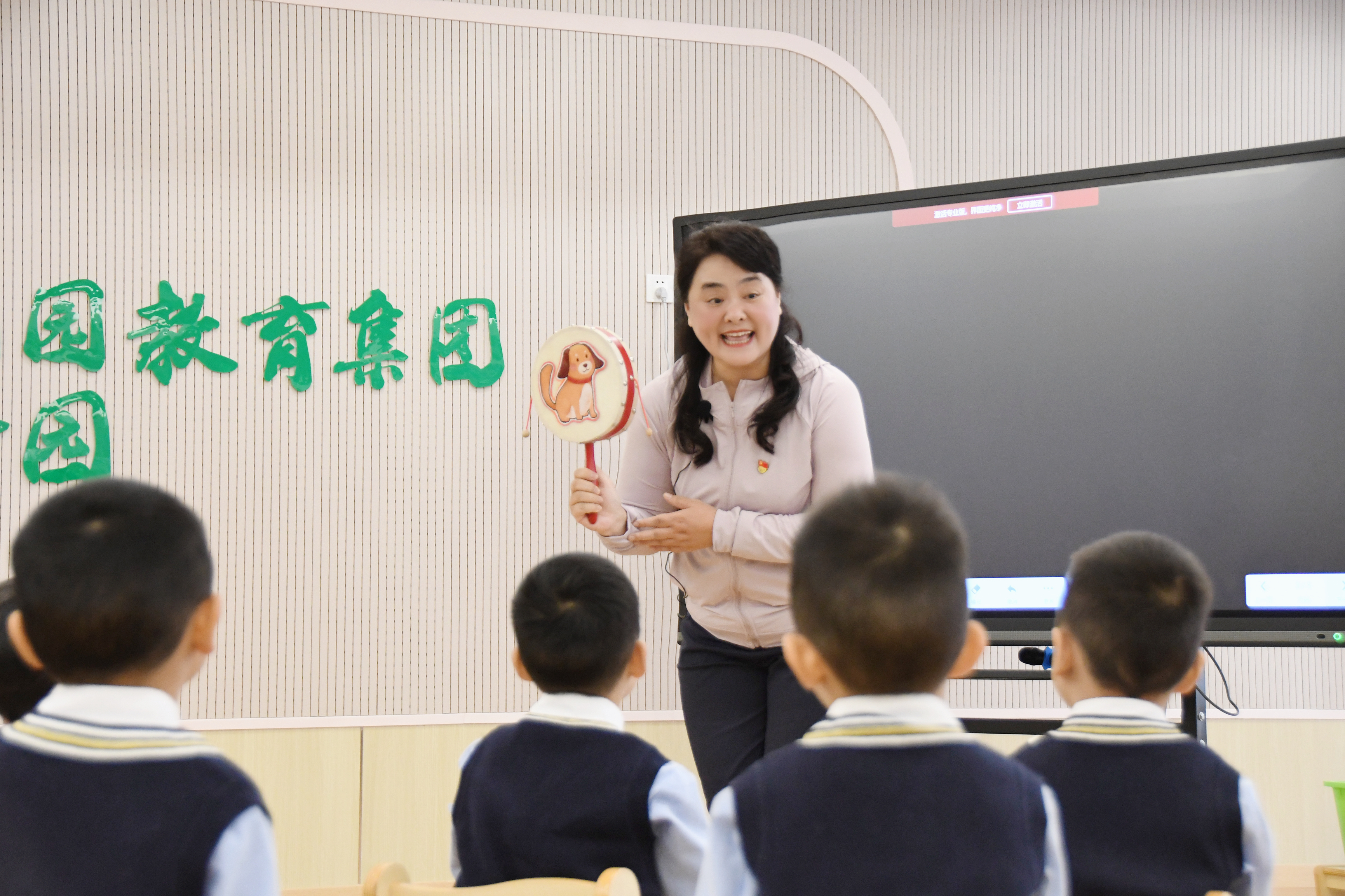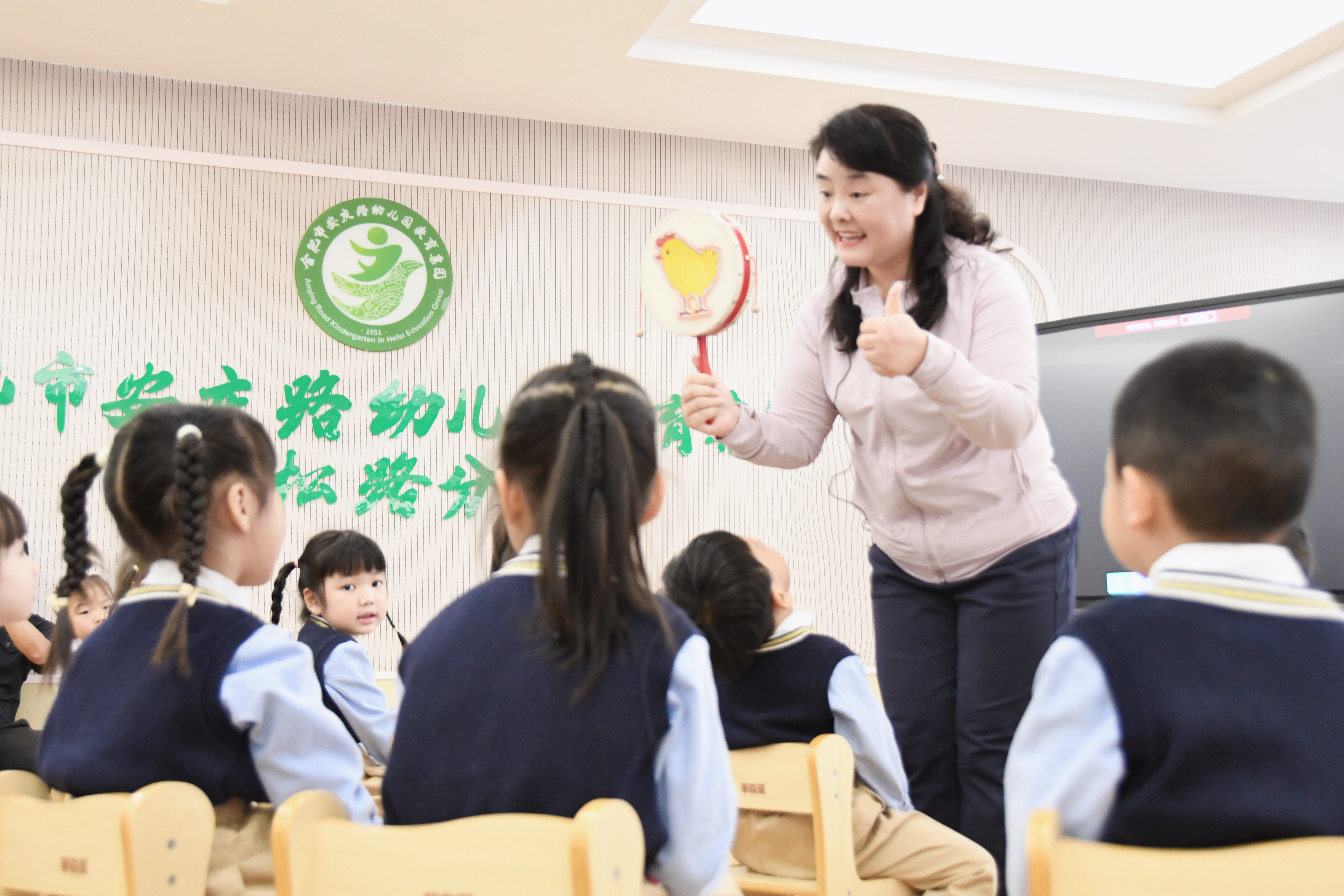 活动前,工作室充分发挥团队力量,通过集体磨课,精准教研,不断优化教学过程,探寻高质量课堂教学之路。活动中,李峥园长巧用多媒体技术、拨浪鼓道具等多种形式激发幼儿学习儿歌的兴趣。以游戏贯穿始终,通过有效互动、多种形式的诵读、图片的支持、分组表演等形式,循序渐进地带领幼儿理解并感受儿歌的语言美、韵律美和情趣美,萌发幼儿对儿歌念诵的兴趣。