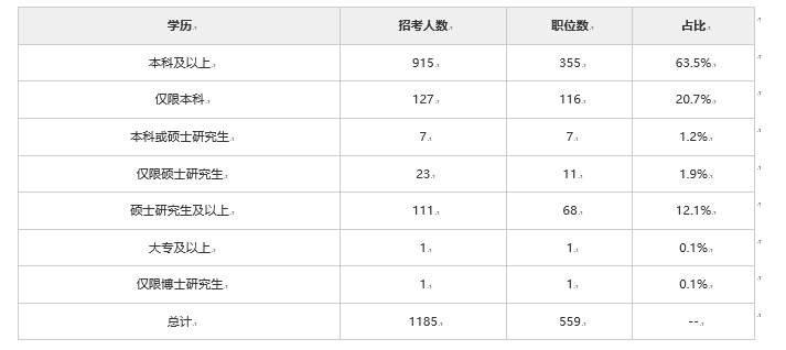 四、本科生可报岗位占近85.5%,是此次招录的主力军