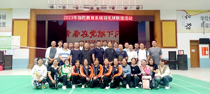 笑声、呐喊声、喝彩声,声声入耳,友谊赛在和谐良好的气氛中落下帷幕。以球会友,以赛传谊,此次羽毛球交流比赛既强健了体魄,又促进了弥陀中学与弥陀初中和弥陀中心学校之间的交流,增进了友谊,丰富了教职工业余文化生活,展现了弥陀教育系统良好的精神风貌!