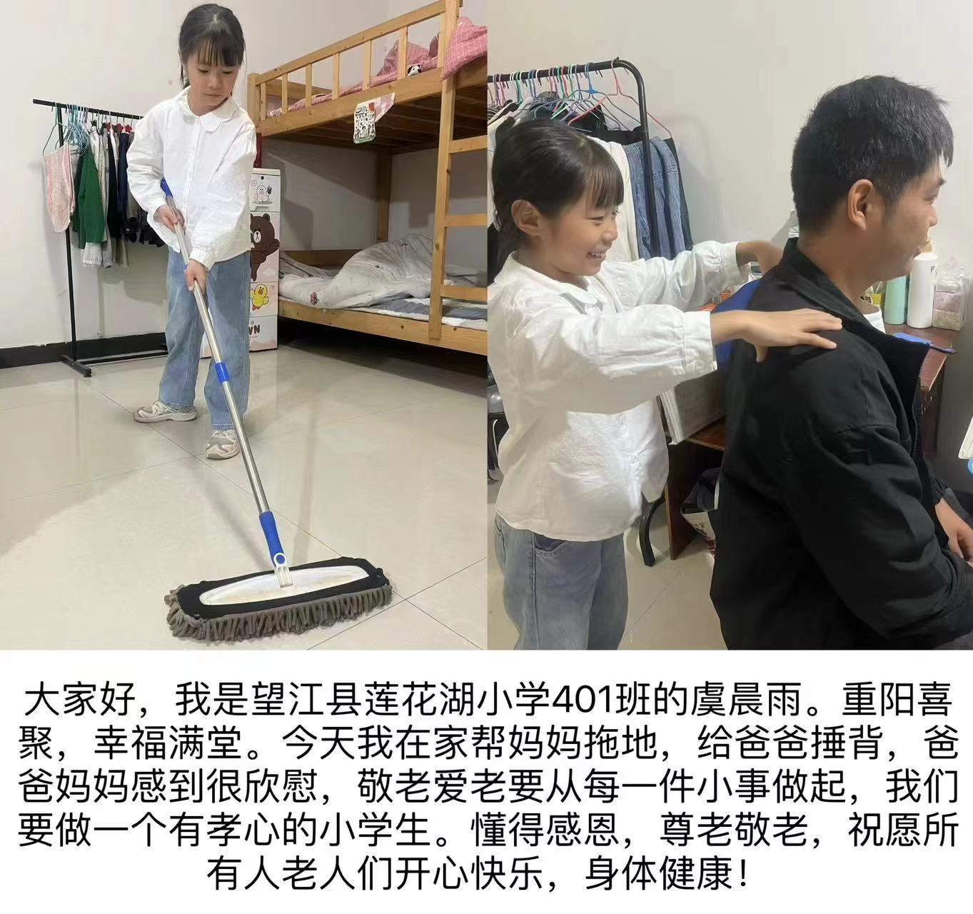 九九重阳节,浓浓敬老情。在这秋桂飘香的季节里,我们迎来了重阳节。为培养学生尊老、敬老的传统美德,10月23日,望江县第一小学开展了以“继承优良传统、做敬老爱老好少年”为主题的系列活动。