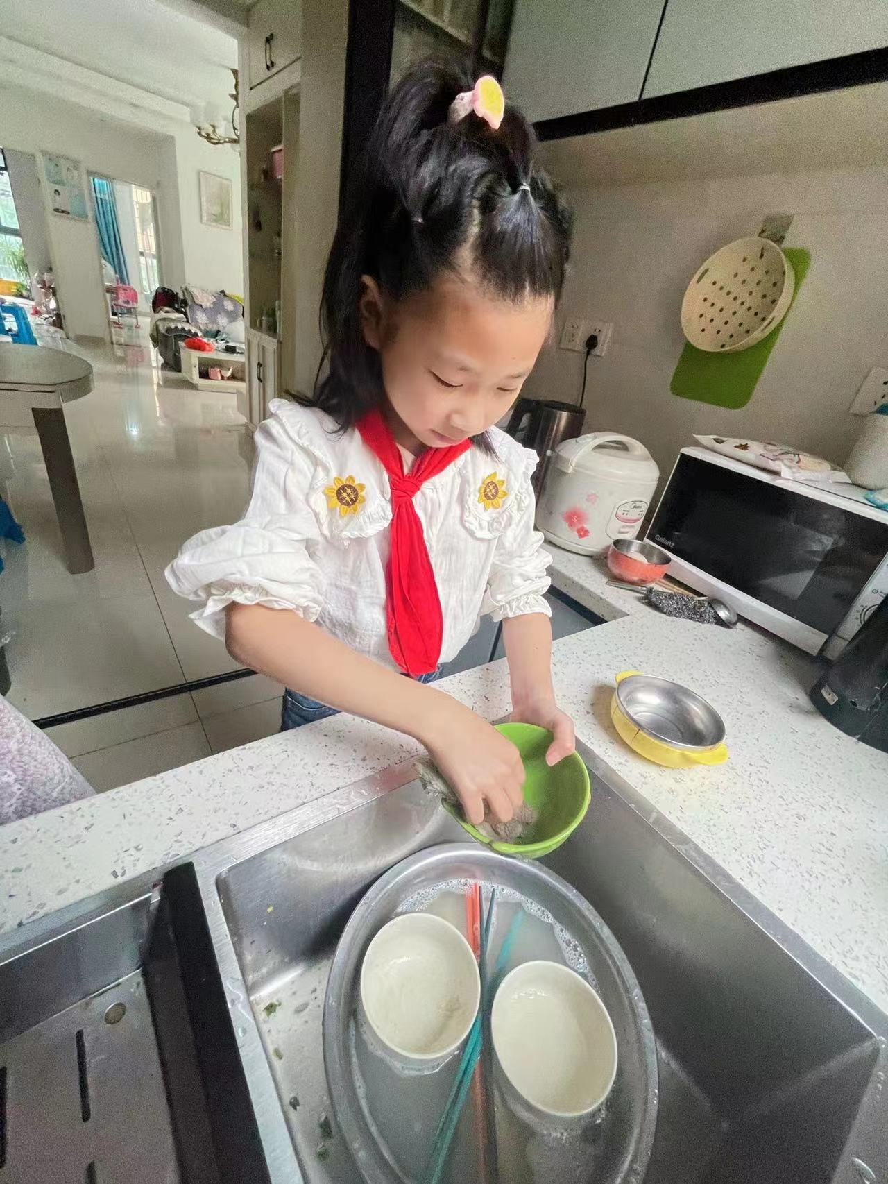 德育处借此活动机会,号召广大学生回家后在家为长辈做一件孝心事。一到三年级同学,为家长泡茶洗脚、盛饭洗碗、叠被洗菜、表演才艺、捶背揉肩等小事,争当贴心小当家。四到六年级同学,学炒几个菜,做一次午饭;拖一次地;洗一次衣服等力所能及的家务活;给长辈制作一张感恩卡等,尽一份孝心,让他们真切的感受到温暖、幸福。