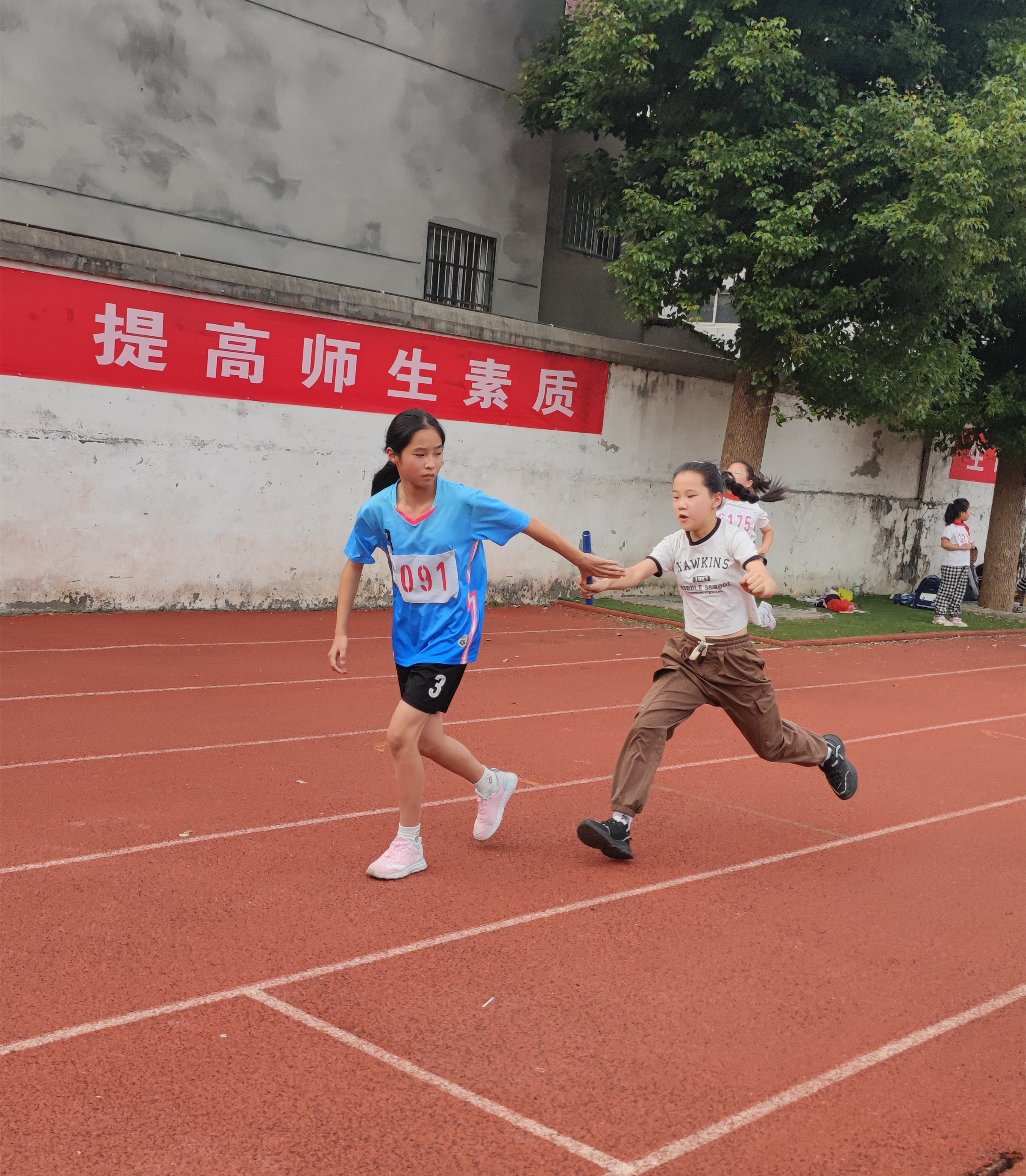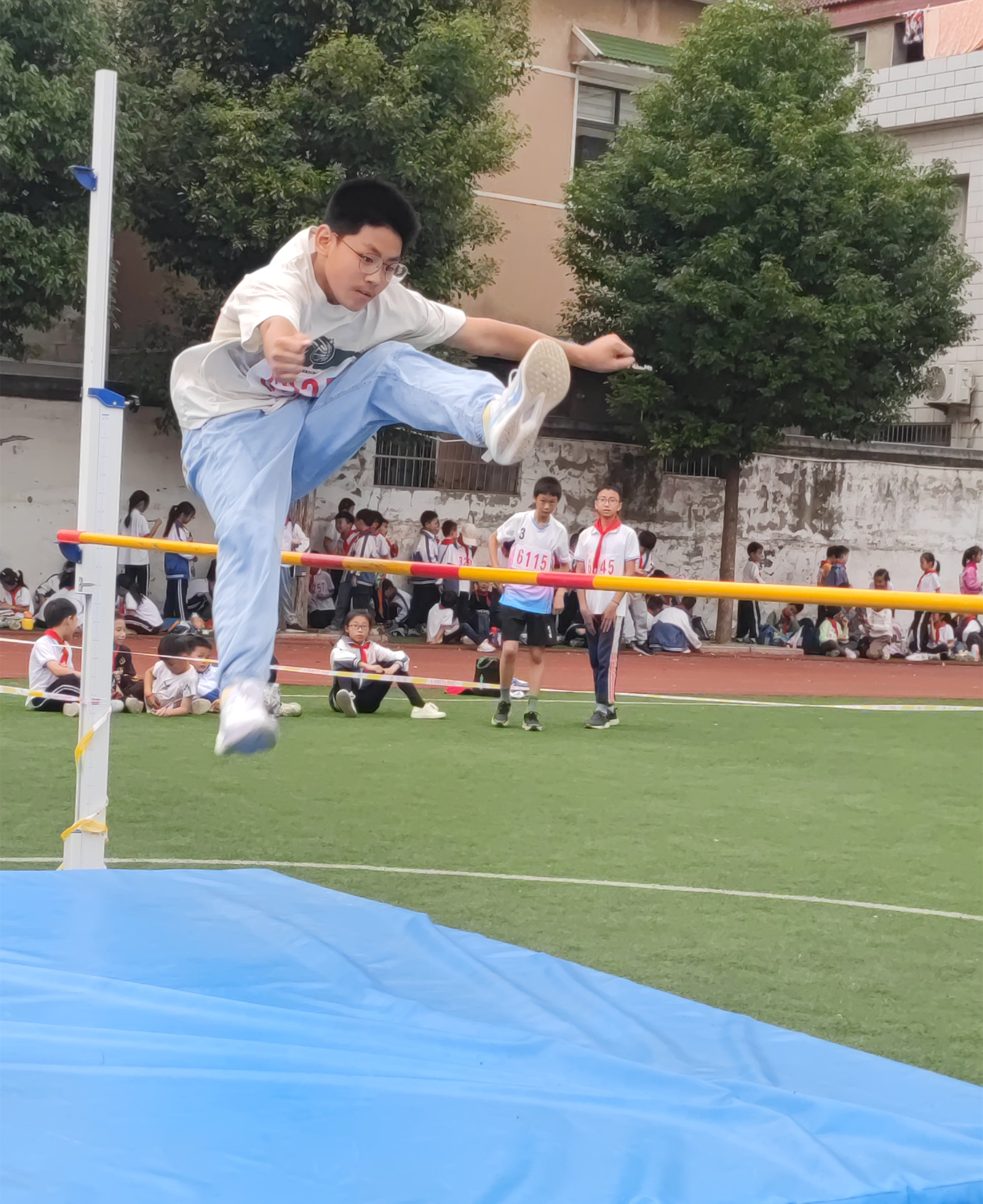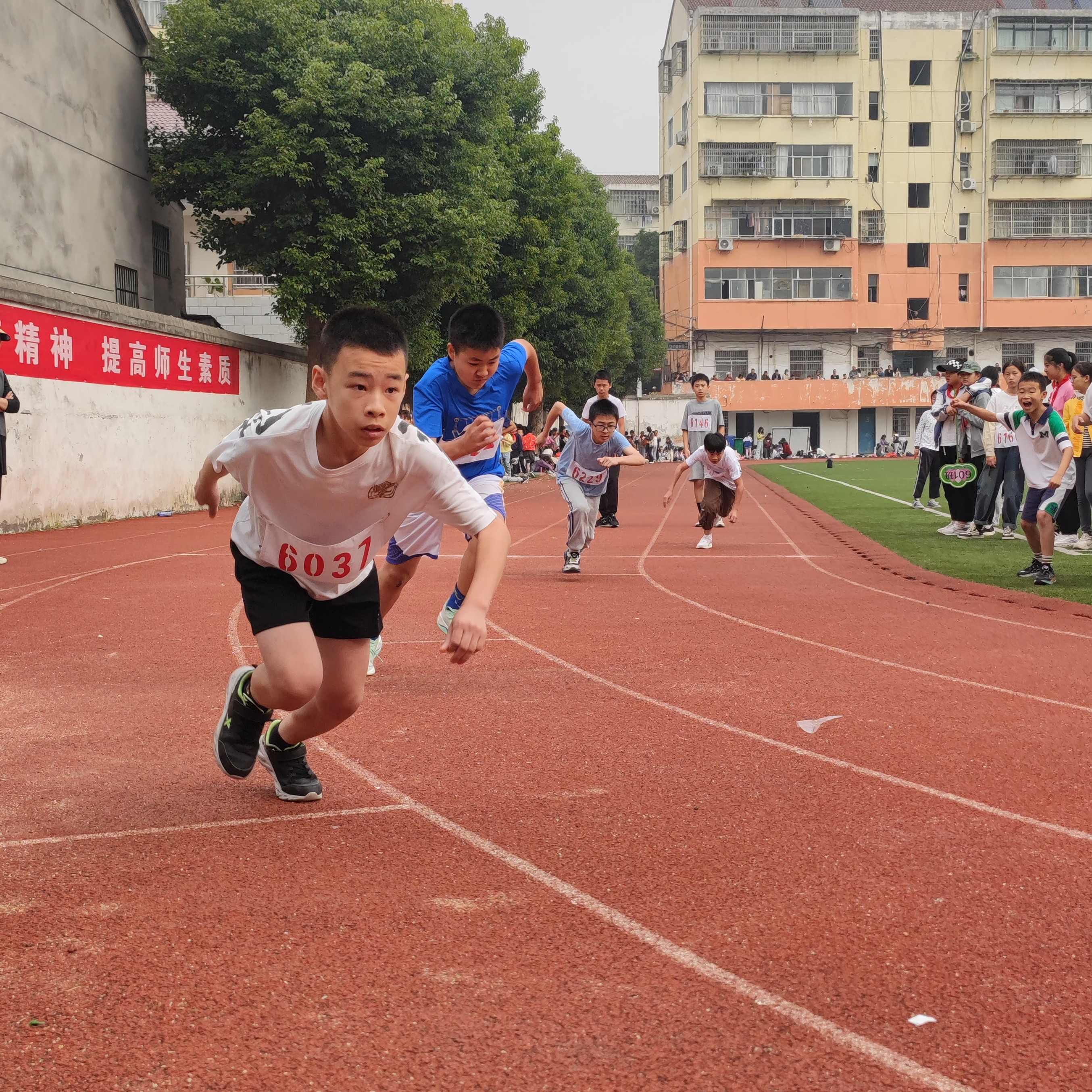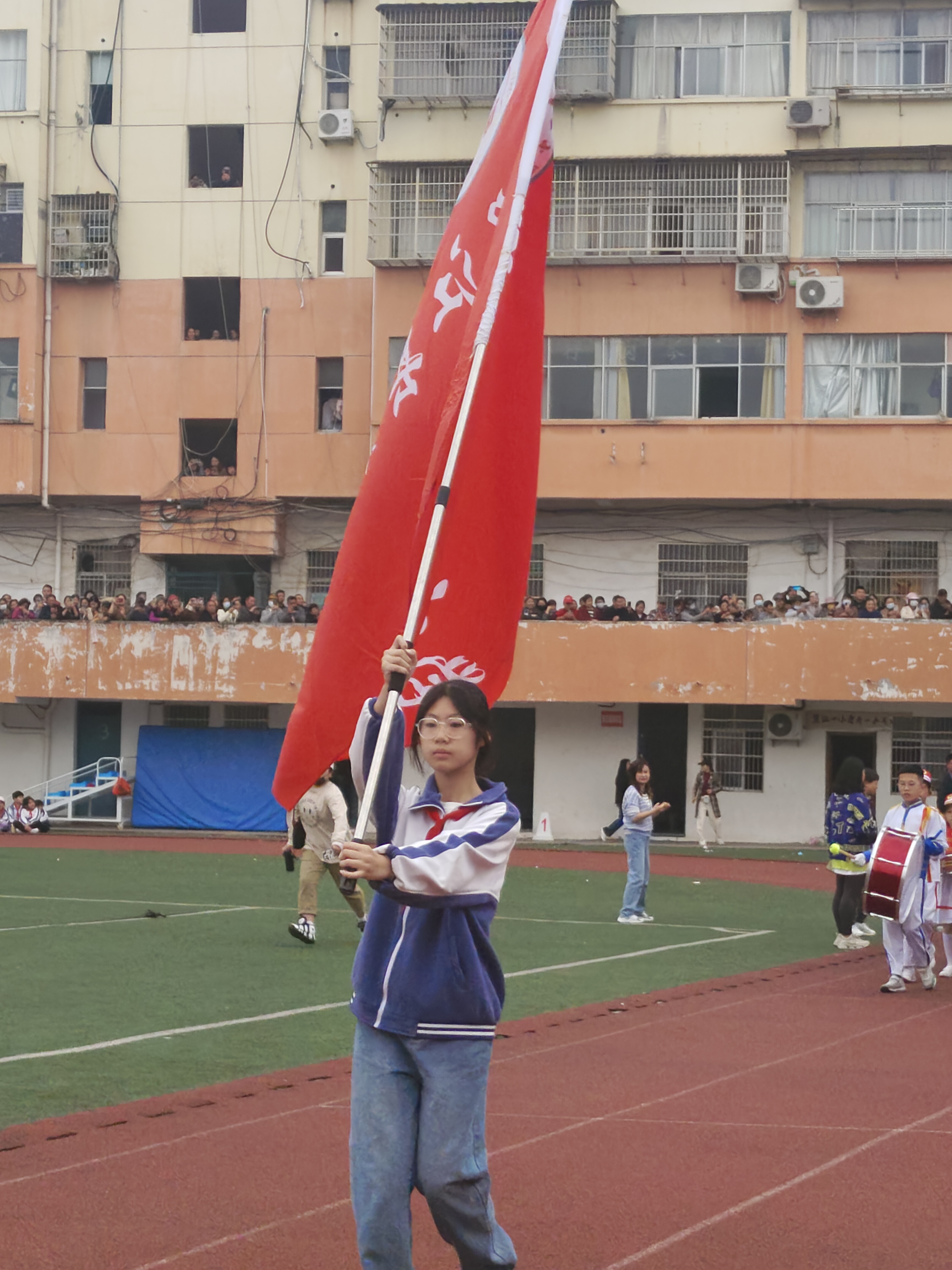 赛场边,观众们也热情高涨,欢呼声此起彼伏。他们挥舞着彩旗,为自己的班级呐喊助威,激情洋溢。还有在各个岗位上认真工作的裁判员、志愿者们共同构成了赛场上最美的风景!