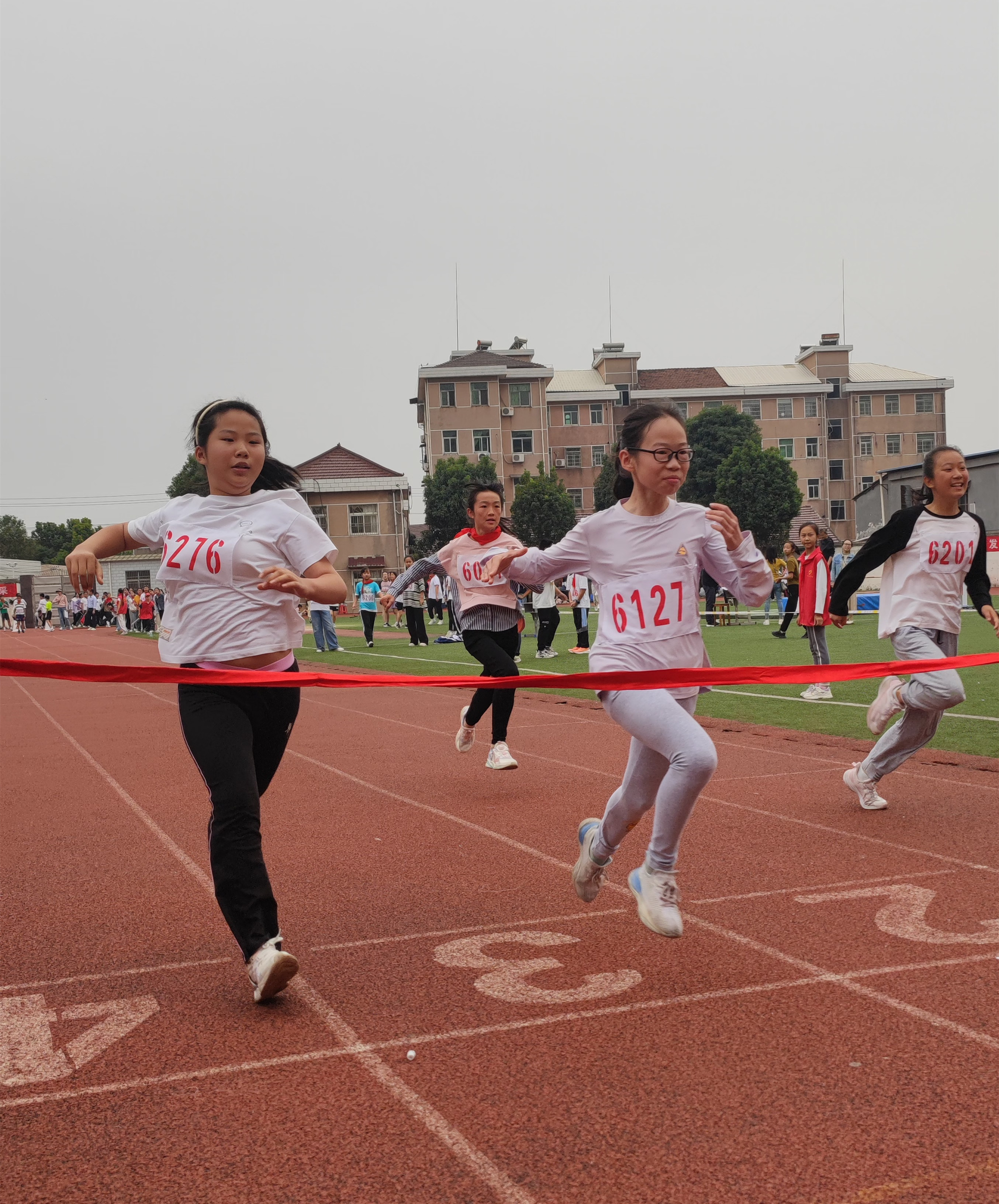 本届运动会共有1500多名运动员,他们分别参加了拔河、径赛和田赛等五个大项目,包括60米、100米、200米、400米、800米、接力赛、跳高、跳远、跳绳、实心球、踢毽子等。经过三天的激烈角逐,运动健儿们在赛场上大显身手,奋力冲刺,挑战自我,突破自我,其中有11人次打破校运会记录。