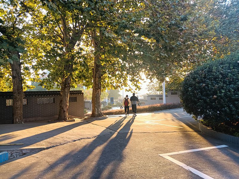 十月的汤中,天高云淡。清晨,宁静的校园笼罩在薄雾之中,显得格外静谧。6:30清脆的起床铃把睡梦中的住宿生叫醒,梧桐树上的露水伴随着学生急促而有节奏的脚步声滴答滴答落下;学校新大门口,宽敞马路的两侧,家长送学生上学的车辆排起数百米长龙,缓缓驶入,徐徐离开,真是一道靓丽的风景。