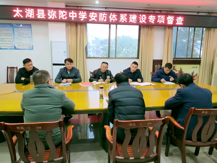 11月13日,太湖县教育局法规安全科科长陈学荣带队,联合县公安局、保安公司到太湖县弥陀中学开展学校安防体系建设专项督查工作。