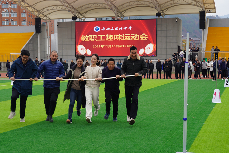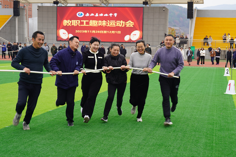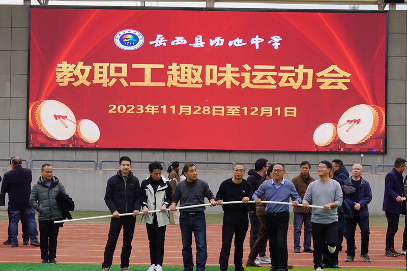 11月28日至12月1日,岳西县汤池中学利用大课间或课外活动时间举行了为期一周的教职工趣味运动会。本次运动会分成七个小组,共设置拔河比赛、三块砖过河接力、旋风绕杆20米往返跑和掼蛋比赛四个项目。全校近两百名教职员工参加。