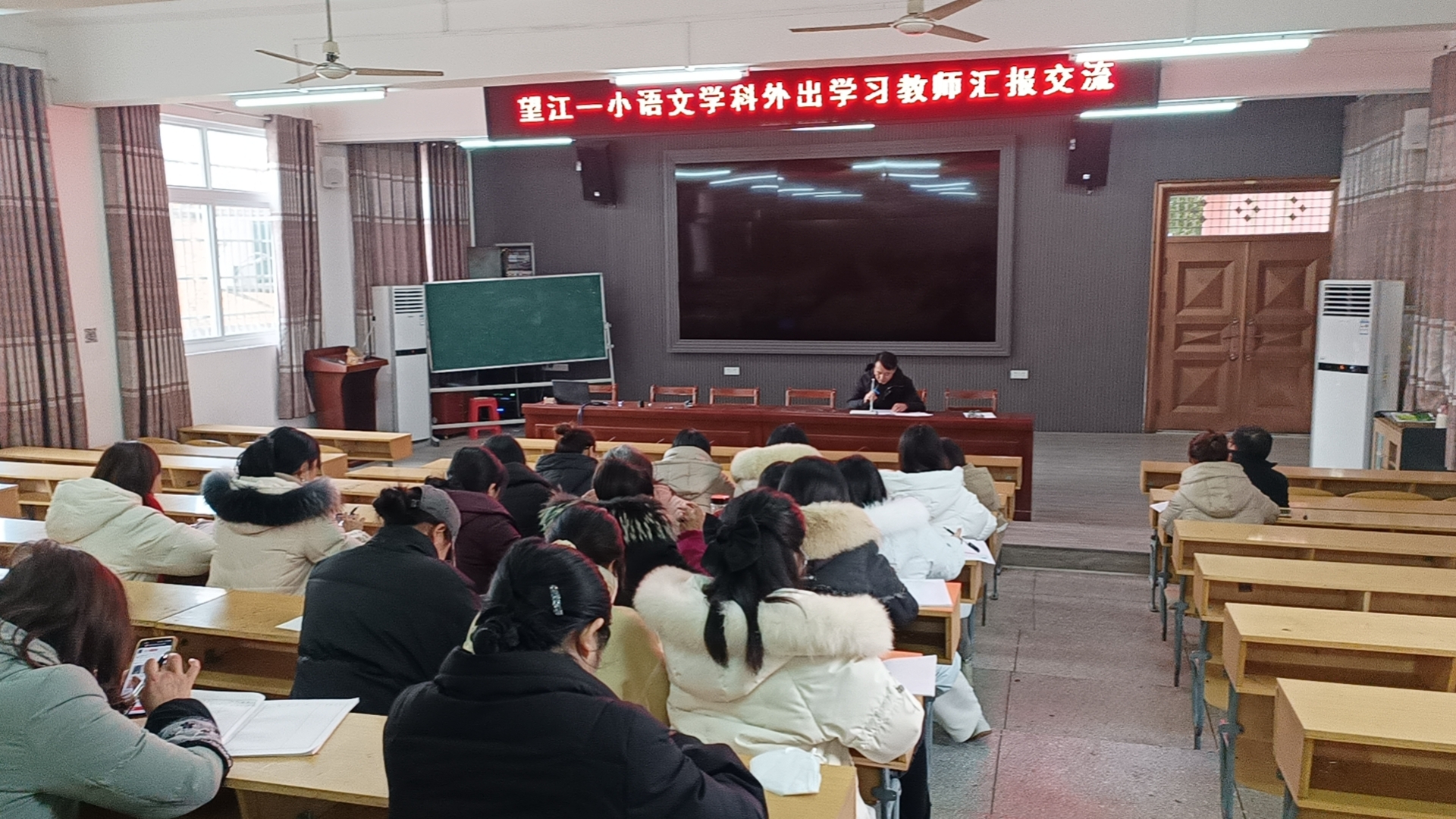 2024年1月3日下午,望江县第一小学开展了语文学科教师外出学习汇报交流活动,五位教师进行了汇报,全体语文教师参与本次汇报学习。