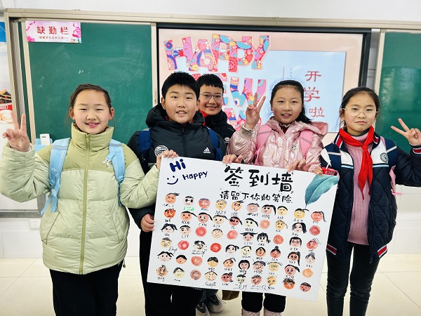 时光恰好,初春相遇。新学期第一天仪式感满满。红火喜庆的龙年展板,教室黑板上的龙年祝福,惊喜满满的龙年红包……处处被爱与欢乐包围。小龙仔们久别重逢,“龙”光焕发。